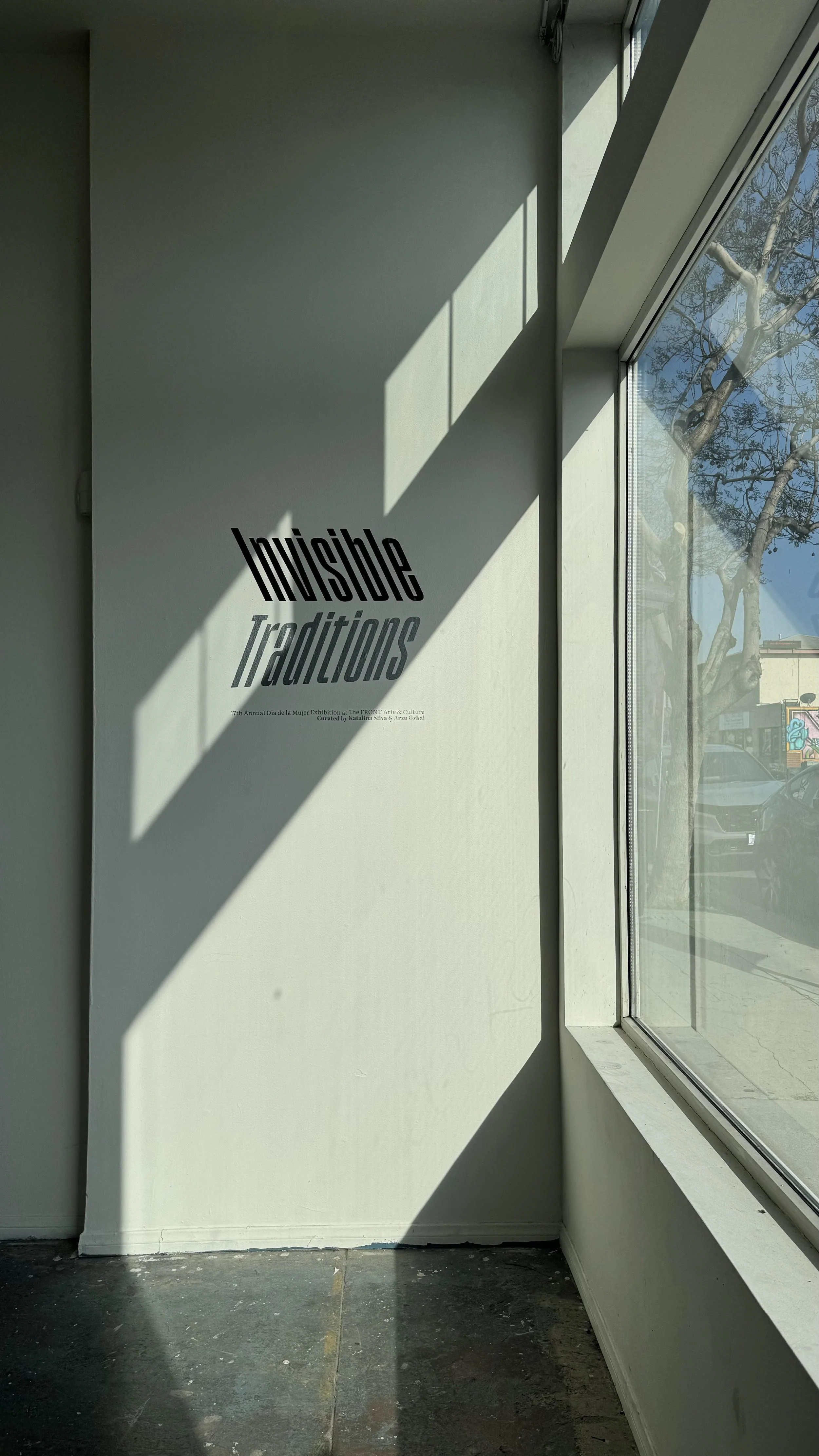 Tradiciones Invisibles fue parte de la 17ª edición de la exposición del Día de la Mujer en The FRONT Arte y Cultura, y por primera vez tuvo una sede simultánea en el Instituto Municipal de Arte y Cultura (IMAC) en Tijuana. Curada por Katalina Silva (Tijuana) y Arzu Ozkal (San Diego), la muestra reunió a más de 35 artistas y diseñadoras de distintas generaciones, disciplinas y contextos.